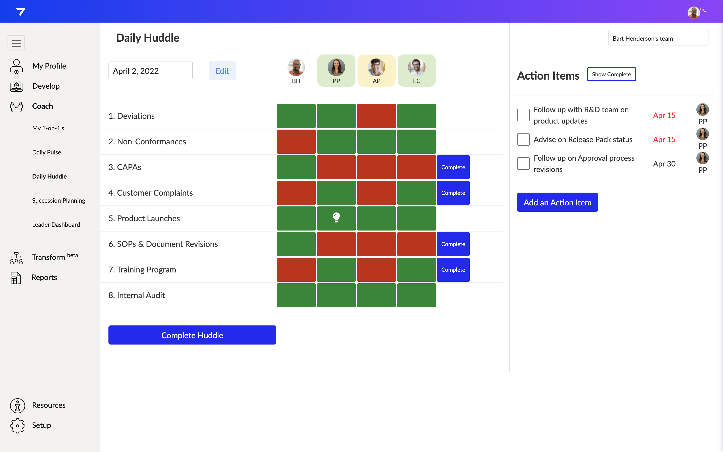 Respond to team member submissions and deep-dive on problem areas as they arise within the meeting feature.