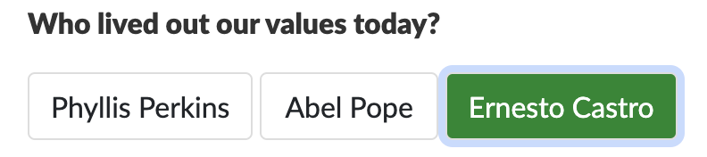 Provide team leaders and team members the chance to give others kudos for regularly living out company values.